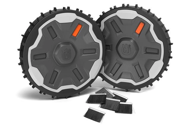 Zestaw terenowy poprawia przyczepność, gdy kosiarka Husqvarna Automower® kosi mokrą, śliską trawę lub na stromych zboczach. Zawiera 2 ciężkie tylne koła i 6 szczotek. Łatwy w montażu i dostępny dla większości modeli kosiarek Automower® zestaw terenowy stanowi część naszej szerokiej gamy wysokiej jakości akcesoriów Automower®.