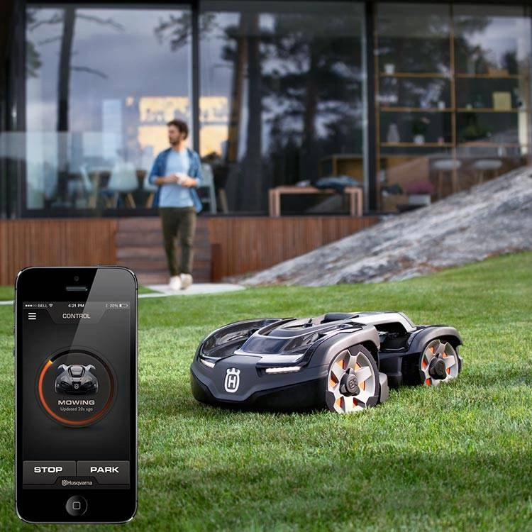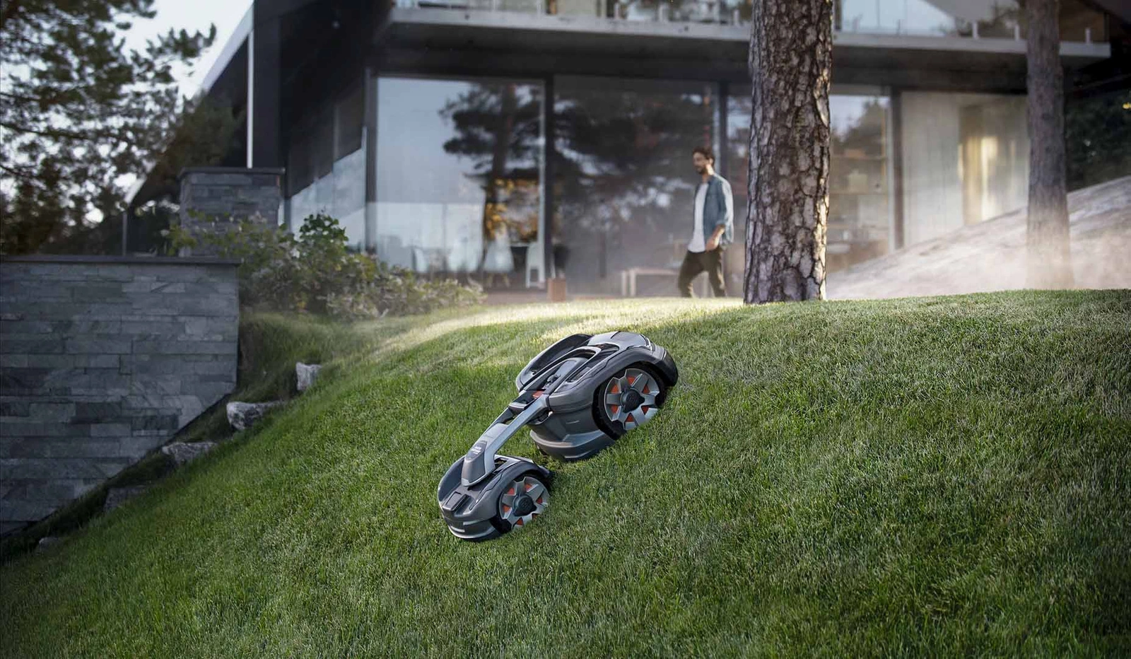 • Kosiarka automatyczna z napędem na cztery koła. Z powodzeniem radzi sobie z obszarami do 3500 m², przeszkodami, nierównym terenem oraz zboczami o nachyleniu do 70 %.