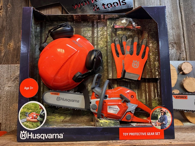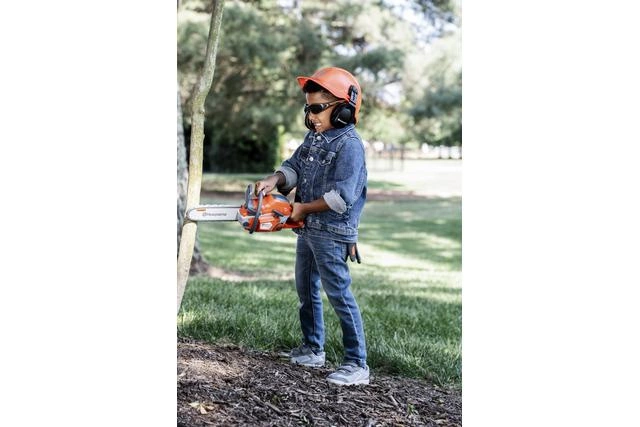 Wygląda jak prawdziwa piła łańcuchowa Husqvarna 550XP z dodatkowym wyposażeniem ochronnym w rozmiarze dziecięcym! Zabawkowa pilarka jest odpowiednia dla dzieci od 3 roku życia. Zawiera realistyczny dźwięk piły łańcuchowej i obracający się łańcuch.