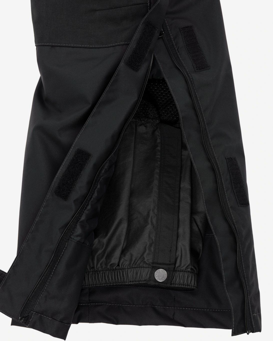 Funkcjonalne spodnie z oddychającego, wodoodpornego i wiatroodpornego materiału Zamki po bokach z obu stron na całej długości ułatwiają zakładanie i zdejmowanie. Wyposażone w wiele praktycznych kieszeni oraz w odpinane i elastyczne szelki.