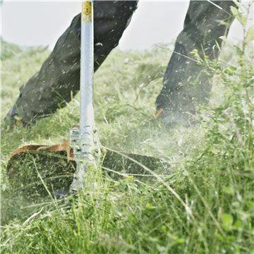 • Przekładnia kątowa typowa dla wykaszarki: Przekładnia kątowa z wysokim momentem obrotowym i urządzeniem tnącym ustawionym równolegle do podłoża zapewnia najwyższą wydajność