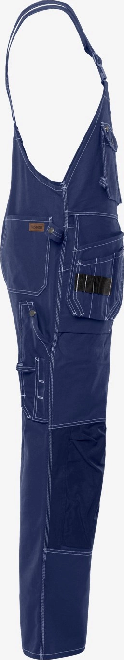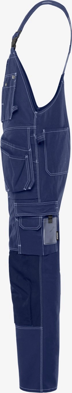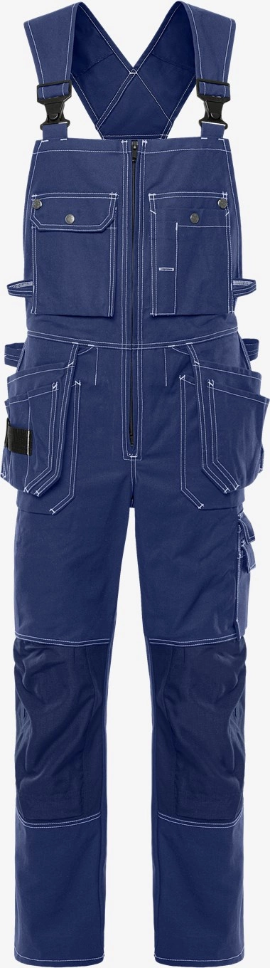 Dwukierunkowy zamek błyskawiczny z przodu / 2 luźno wiszące kieszenie na piersi z zapięciem na zatrzaski / Guzik i szlufka na nóż / 2 zapinane na guziki, luźno wiszące kieszenie dodatkowo wzmocnione CORDURA®: 1 z dodatkową kieszenią, 1 z 3 małymi kieszeniami i szlufkami / 2 duże przednie i tylne kieszenie / Składana kieszeń na miarkę / Kieszeń na nogawce z kieszenią na narzędzia / Kieszeń na długopis / 2 szlufki na młotek: 1 regulowana / Wzmocnione kieszenie na kolanach CORDURA® z wewnętrznym otworem / Regulacja wysokości nakolanników / Zatwierdzone zgodnie z EN 14404 razem z nakolannikami 124292 / certyfikat OEKO-TEX®.