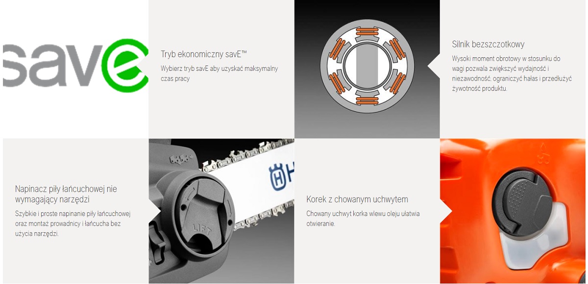 Lekka, wygodna pilarka na akumulator litowo-jonowy. Nie wymaga narzędzi, jest łatwa w rozruchu i ma intuicyjną klawiaturę.