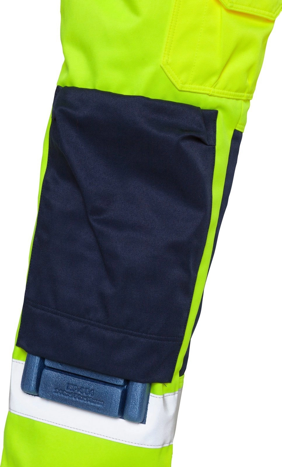 2 kieszenie boczne / Kieszenie tylne / Kieszeń na nogawce z klapką i zapięciem na rzep, kieszeń na telefon z klapką i zapięciem na rzep / D-ring / Składana kieszeń na linijkę i długopis oraz z guzikiem i pętelką na nóż / Kieszenie na kolanach z otworami na nakolanniki i z możliwością regulacji ich wysokości / Zatwierdzone zgodnie z EN 14404 wraz z nakolannikami 127440 i EN ISO 20471 klasa 2 / W przypadku certyfikowanego połączenia z innymi dobrze widocznymi częściami odzież ta jest klasyfikowana jako Kansas T4 / Certyfikat OEKO-TEX®