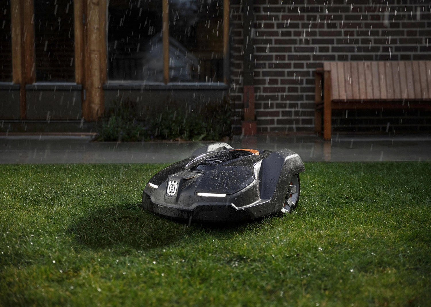 - Pogodoodporna: Kosiarka Automower® może pozostawać w ogrodzie przez całą dobę, gdyż została zaprojektowana tak, aby funkcjonować prawidłowo bez względu na warunki pogodowe. Jej konstrukcja sprawdza się nawet w trudnym klimacie Skandynawii.