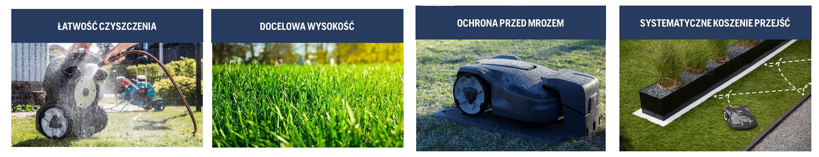 - Można myć za pomocą węża ogrodowego. W komplecie czujnik wzrostu trawy, czujnik mrozu i Automower® Connect@Home.