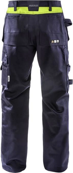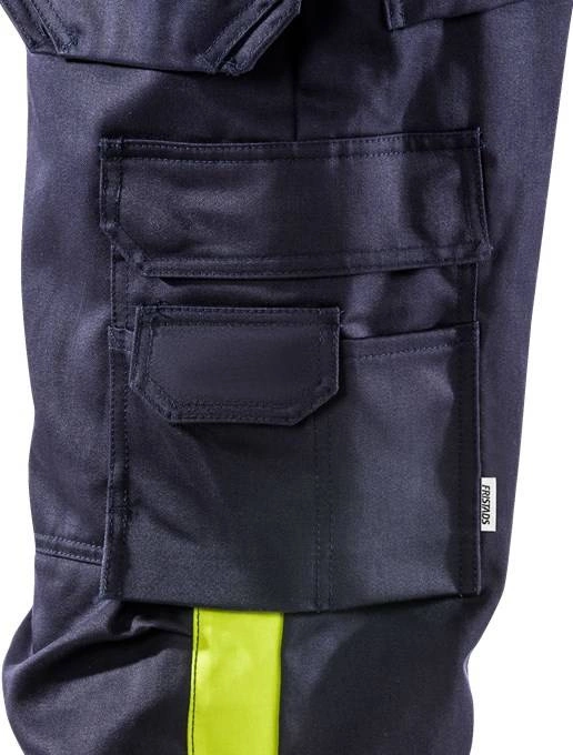 Ognioodporne spodnie rzemieślnicze z kieszeniami na nakolanniki. Wykonane z wytrzymałego materiału o wysokim poziomie bawełny