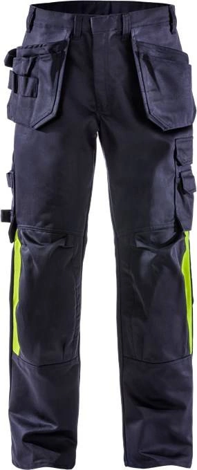 - Ognioodporne spodnie rzemieślnicze z kieszeniami na nakolanniki. Wykonane z wytrzymałego materiału o wysokim poziomie bawełny