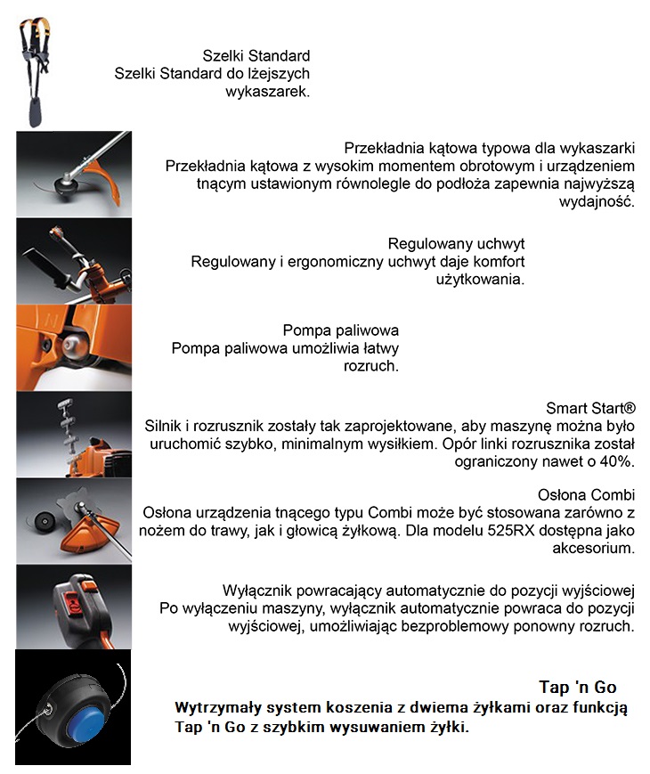 Osłona urządzenia tnącego typu Combi może być stosowana zarówno z nożem do trawy, jak i głowicą żyłkową.