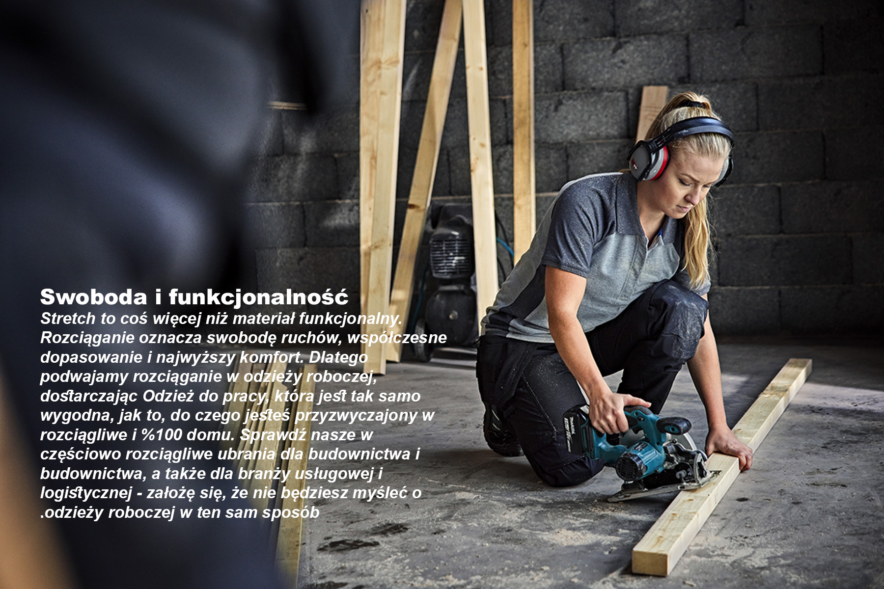 Spodenki rzemieślnicze wykonane z lekkiego materiału strech dla dużej swobody ruchów