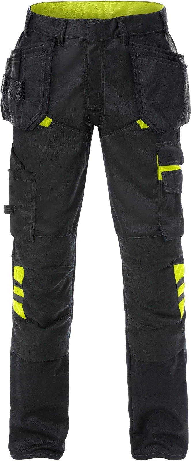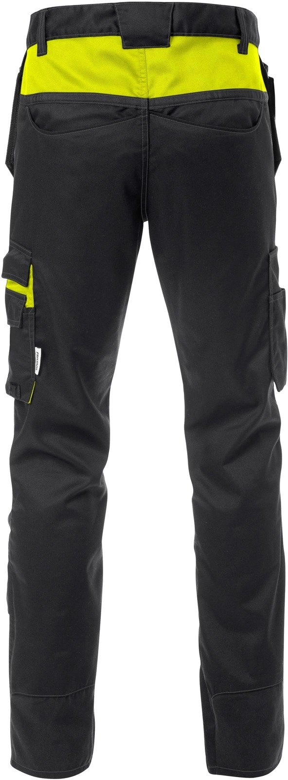 Elastyczny materiał / 2 kieszenie z przodu / 2 luźno wiszące kieszenie: 1 z 3 mniejszymi kieszeniami i pętelką na narzędzia i 1 z jedną dodatkową kieszenią / Podwójny szew krokowy / 2 kieszenie z tyłu / Składana kieszeń z kieszenią na narzędzia, kieszenią na długopis oraz guzikiem i pętelką na nóż / 2 kieszenie na udach / kieszeń na nogawce z klapką i zapięciem na rzep: kieszeń na telefon komórkowy i dodatkowa kieszeń z klapką i zapięciem na rzep, D-ring pod klapą / wzmocnione kieszenie na kolanach CORDURA® z otwarciem na zewnątrz / regulacja wysokości na nakolanniki / wzmocnione końce nogawek / Zatwierdzone zgodnie z EN 14404 wraz z nakolannikami 124292 / Przetestowane pod kątem prania zgodnie z ISO 15797 / Certyfikat OEKO-TEX®