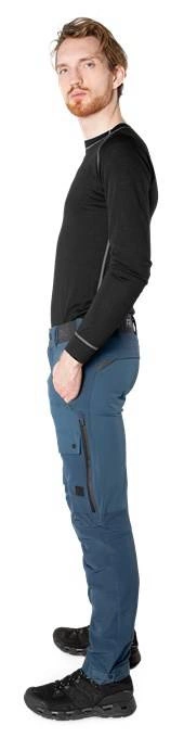 Elastyczne spodnie wykonane z materiału pochodzącego z recyklingu. Szyte na 4 strony. Spodnie posiadają boczną "wentylację", sześć funkcjonalnych kieszeń oraz odblaskowe detale