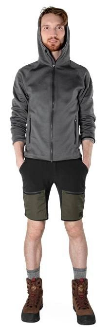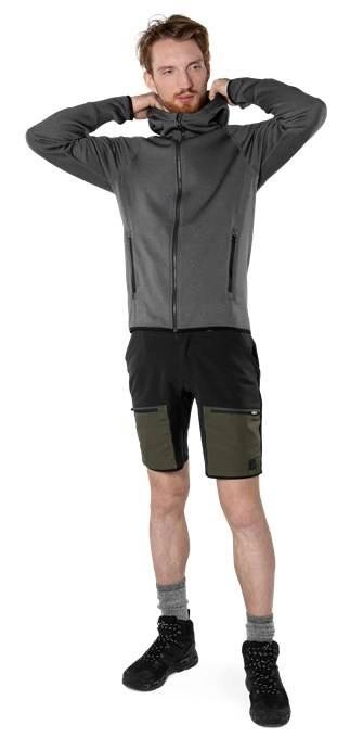 Wytrzymałe spodenki z elementami materiału elastycznego. Funkcjonalne spodenki wykonane z materiału pochodzącego z recyklingu. Wyposażone w cztery kieszenie, elastyczną talię oraz elementy odblaskowe