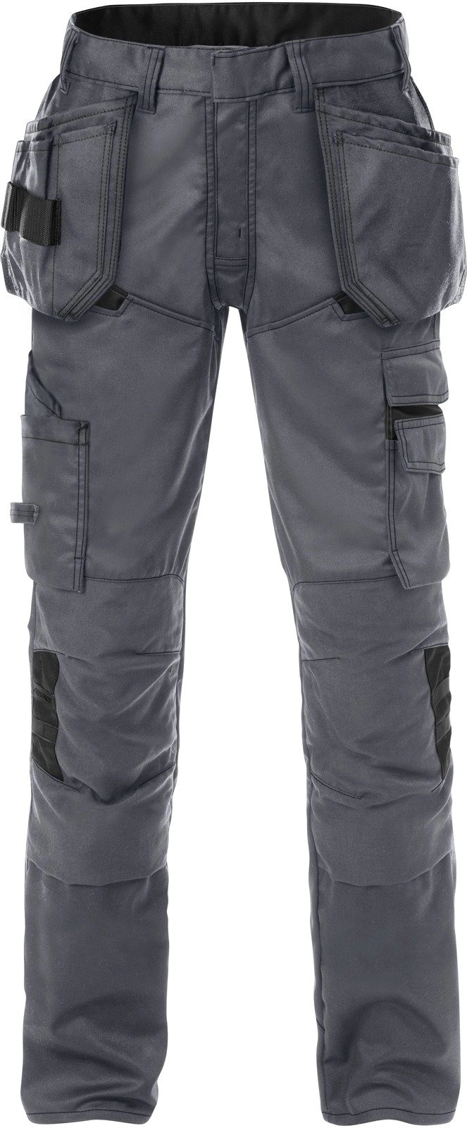 Elastyczny materiał / 2 kieszenie z przodu / 2 luźno wiszące kieszenie: 1 z 3 mniejszymi kieszeniami i pętelką na narzędzia i 1 z jedną dodatkową kieszenią / Podwójny szew krokowy / 2 kieszenie z tyłu / Składana kieszeń z kieszenią na narzędzia, kieszenią na długopis oraz guzikiem i pętelką na nóż / 2 kieszenie na udach / kieszeń na nogawce z klapką i zapięciem na rzep: kieszeń na telefon komórkowy i dodatkowa kieszeń z klapką i zapięciem na rzep, D-ring pod klapą / wzmocnione kieszenie na kolanach CORDURA® z otwarciem na zewnątrz / regulacja wysokości na nakolanniki / wzmocnione końce nogawek / Zatwierdzone zgodnie z EN 14404 wraz z nakolannikami 124292 / Przetestowane pod kątem prania zgodnie z ISO 15797 / Certyfikat OEKO-TEX®