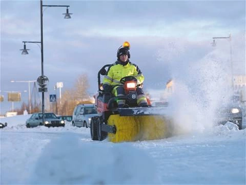 Regulowane kółka podporowe. Może być ustawiona pod kątem 20° w prawo lub w lewo. Szczotka może mieć zastosowanie przy zamiataniu, i odśnieżaniu.