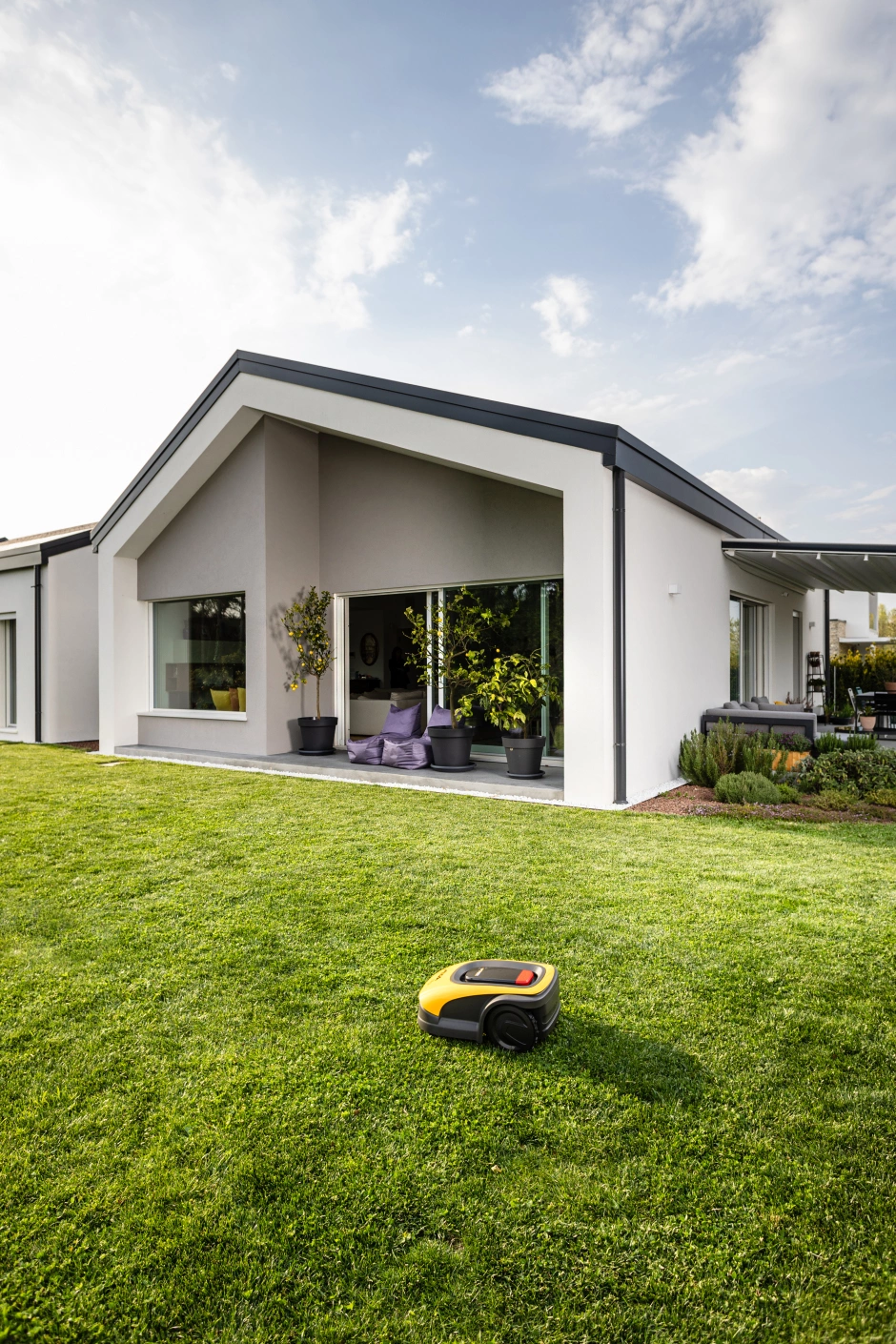 Automatyczne wykrywanie wąskich przejść. Aby zapobiec powstawaniu nieestetycznych śladów, kosiarka za każdym razem zmieni sposób przejazdu i poradzi sobie z przejazdem nawet w najwęższych miejscach.