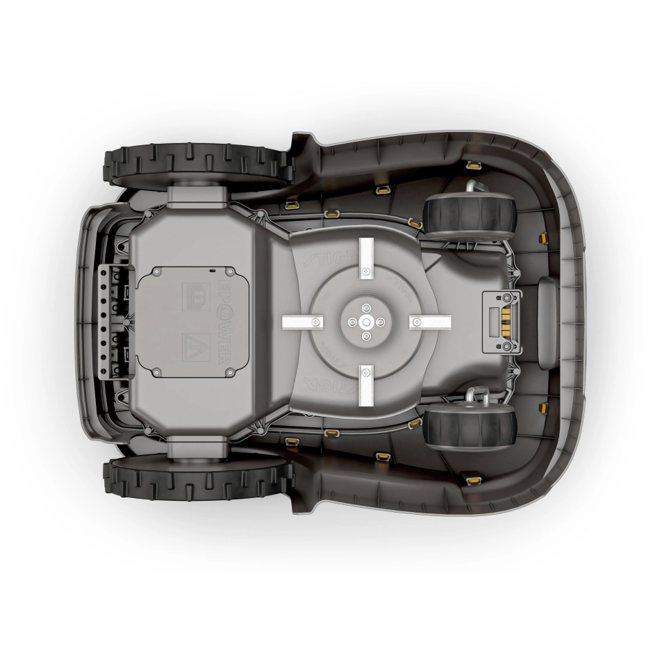 Lekki i niewielkich rozmiarów robot koszący STIG może bez wysiłku manewrować wokół przeszkód. Co więcej, dzięki doskonałemu wyważeniu STIG bez problemu radzi sobie z nierównym podłożem i może pokonywać wzniesienia do 24 °. Dwa elektroniczne „mózgi” STIG'a (płyta zasilająca i płyta główna) uczą się, kiedy i gdzie ciąć. Ze względów bezpieczeństwa czujniki miękkich przeszkód zatrzymują STIG'a w momencie, gdy napotka jakąkolwiek przeszkodę. Czujniki deszczu odsyłają go z powrotem do stacji dokującej przy pierwszych oznakach deszczu. Możesz nawet podłączyć STIG'a do swojego smartfona i kontrolować jego cięcie i ustalać harmonogram. Za pomocą aplikacji STIGA.GO możesz ustawić do 5 punktów Go-To-Cut, czyli punktów na przewodzie, od których STIG zacznie koszenie - aby zapewnić swojemu ogrodowi, niezależnie od tego, jak wygląda, równe cięcie. Następnie, gdy praca STIG-a jest skończona, wystarczy podnieść górną pokrywę i umyć go wężem ogrodowym - dzięki ochronie IPX5, zawsze możesz utrzymać STIG-a w dobrej kondycji i czystości. Robot w zestawie z akumulatorem i ładowarką E1200 m².