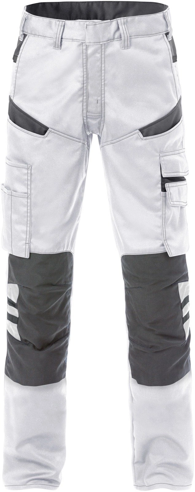 Spodnie o nowoczesnym kroju dla pracowników w sektorze usług, przemysłu lub budownictwa. Wykonane z lekkiego i wytrzymałego materiału z mechanicznym naciągiem, który zapewnia wygodną swobodę ruchów. Wyposażone w kieszenie na kolanach. Zatwierdzone do prania przemysłowego.