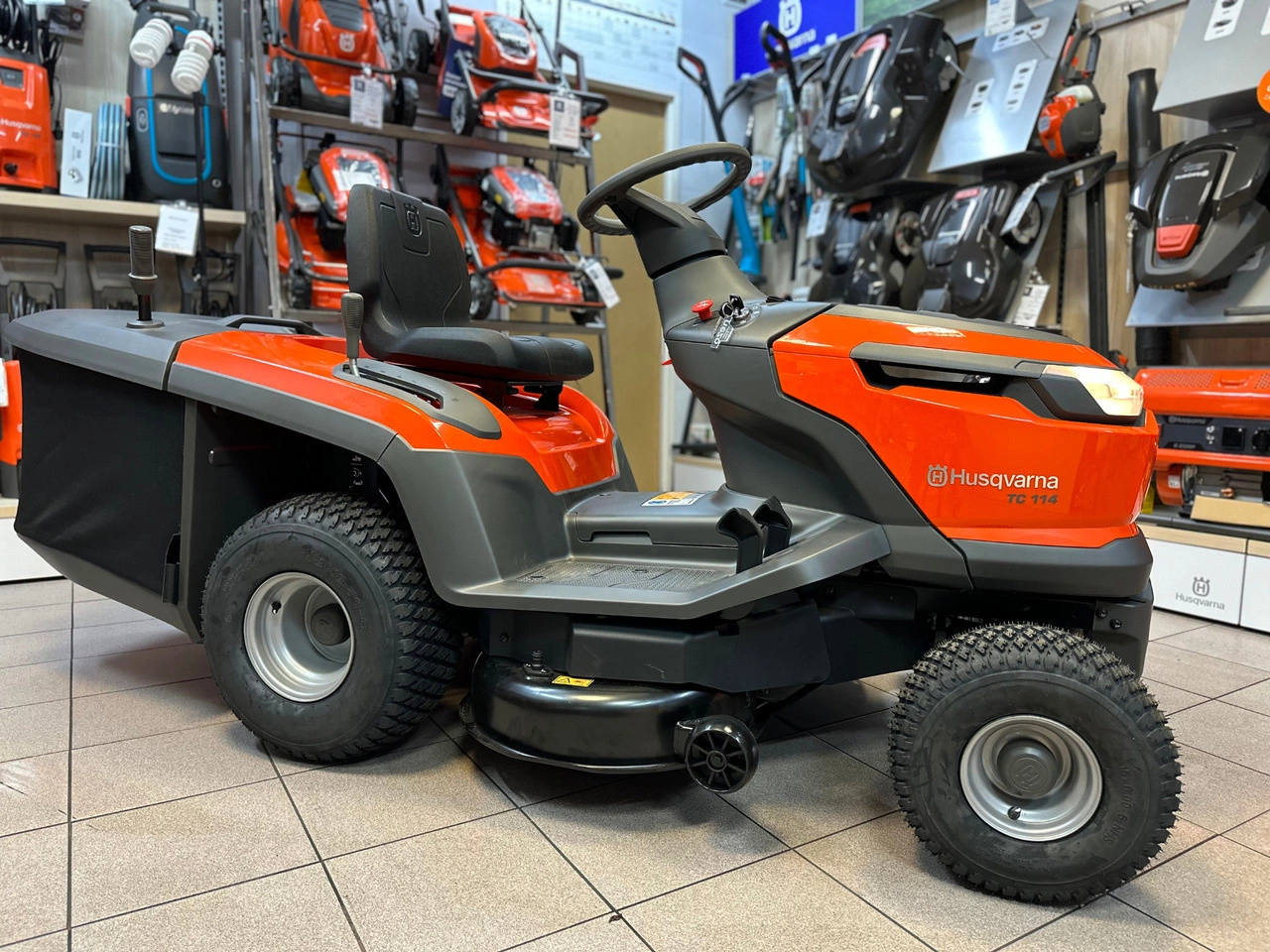 Traktorek Husqvarna TC 114 to wygodna i łatwa w obsłudze maszyna, która zapewni doskonałe rezultaty w koszeniu. Posiada wiele funkcji, takich jak m.in: wybór metody koszenia, regulacja poziomu koszenia, cyfrowy motolicznik, reflektory oraz pojemny kosz 250l, który z łatwością można opróżnić z poziomu fotela kierowcy. Doskonale sprawdzi się w takich pracach jak: zbieranie ścinki trawy, liści i innych resztek roślinnych dając estetyczne rezultaty pracy. Nakładka BioClip dostępna jako dodatkowa opcja.