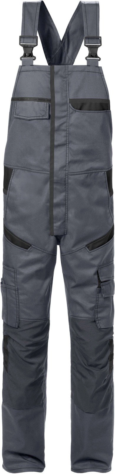 Ogrodniczki ze współczesnym dopasowaniem dla pracowników z branży przemysłowej, usługowej lub budowlanej. Wykonane z lekkiego i wytrzymałego materiału z mechanicznym naciągiem, który zapewnia wygodną swobodę ruchów. Wyposażone w kieszenie na kolanach i elementy odblaskowe dla lepszej widoczności. Zatwierdzone do prania przemysłowego.