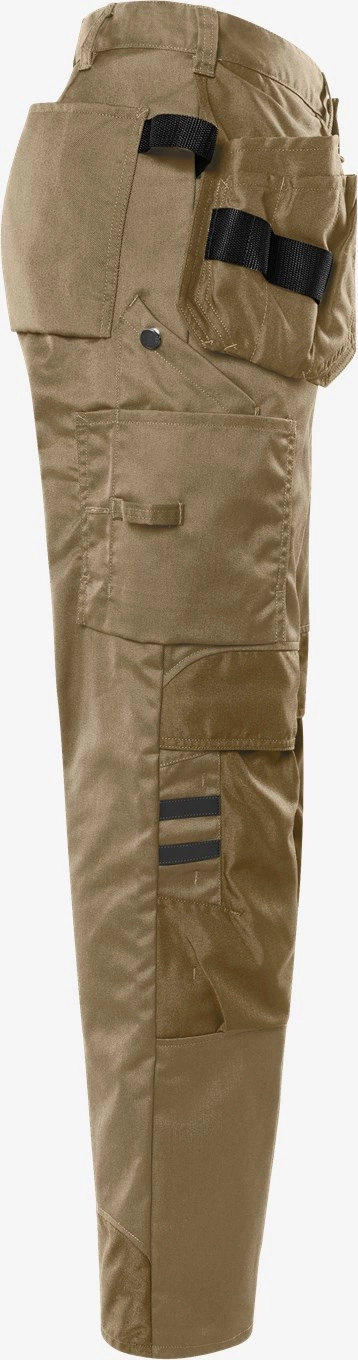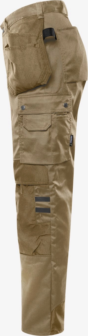 Materiał częściowo pochodzący z recyklingu / Z deklaracją środowiskową produktu (EPD) / Mechaniczny stretch / 2 luźno wiszące kieszenie CORDURA®, jedna z 3 mniejszymi kieszeniami i pętlami na narzędzia, jedna z dodatkową kieszenią / 2 przednie kieszenie / 2 tylne kieszenie wzmocnione CORDURA® / Pętla na kartę identyfikacyjną lub klucze z przodu / Podwójnie wzmocniony szew krokowy / Pętla na młotek po obu stronach / Prawa kieszeń na nogawce ze składaną kieszenią na prawidła, Kieszeń na lewej nogawce z zapięciem na zatrzask, kieszenią na telefon i dodatkową kieszenią ze szlufką na identyfikator / Wzmocnione CORDURĄ® kieszenie na kolanach z zewnętrznym otwarciem od góry / Regulacja wysokości nakolanników w kieszeni na kolanach / Wzmocnione CORDURĄ® zakończenia nogawek / Odblaskowe detale na kolanach / Zatwierdzone zgodnie z EN 14404 wraz z nakolannikami 124292 / Certyfikat OEKO-TEX® / Numer rejestracyjny EPD 10772 na environdec.com