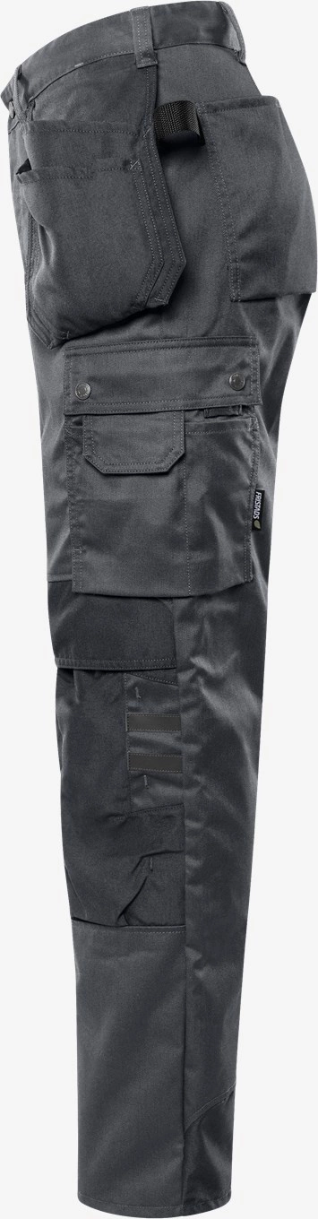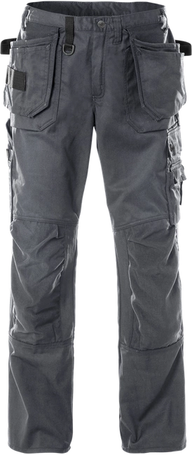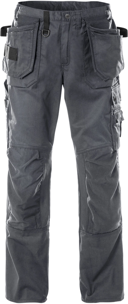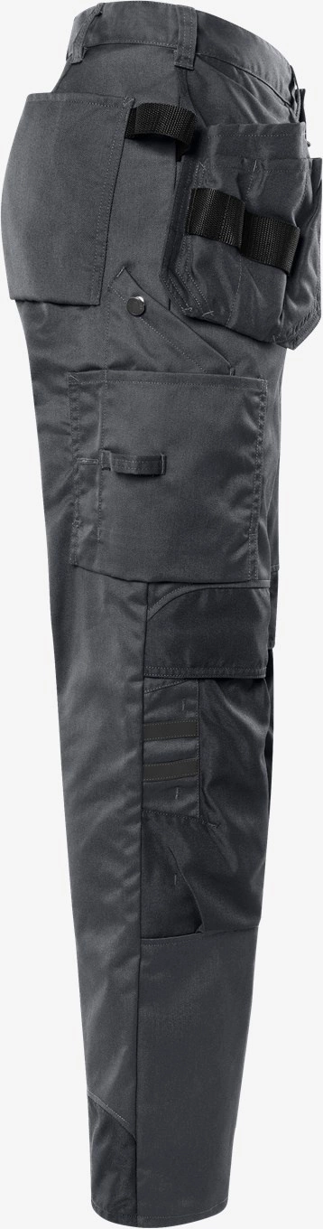 Materiał częściowo pochodzący z recyklingu / Z deklaracją środowiskową produktu (EPD) / Mechaniczny stretch / 2 luźno wiszące kieszenie CORDURA®, jedna z 3 mniejszymi kieszeniami i pętlami na narzędzia, jedna z dodatkową kieszenią / 2 przednie kieszenie / 2 tylne kieszenie wzmocnione CORDURA® / Pętla na kartę identyfikacyjną lub klucze z przodu / Podwójnie wzmocniony szew krokowy / Pętla na młotek po obu stronach / Prawa kieszeń na nogawce ze składaną kieszenią na prawidła, Kieszeń na lewej nogawce z zapięciem na zatrzask, kieszenią na telefon i dodatkową kieszenią ze szlufką na identyfikator / Wzmocnione CORDURĄ® kieszenie na kolanach z zewnętrznym otwarciem od góry / Regulacja wysokości nakolanników w kieszeni na kolanach / Wzmocnione CORDURĄ® zakończenia nogawek / Odblaskowe detale na kolanach / Zatwierdzone zgodnie z EN 14404 wraz z nakolannikami 124292 / Certyfikat OEKO-TEX® / Numer rejestracyjny EPD 10772 na environdec.com