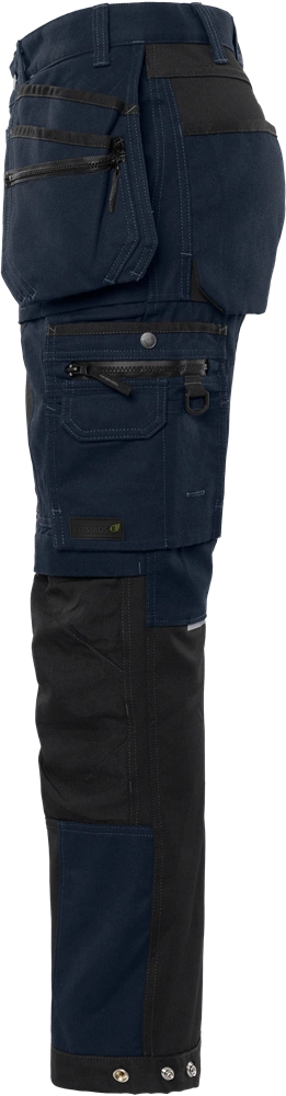 Spodnie rzemieślnicze z dużymi panelami z rozciągliwego w 4 kierunkach materiału optymalizującego mobilność. Wytrzymałe spodnie robocze wykonane z wygodnej bawełny i poliestru pochodzącego z recyklingu, z funkcjonalnymi kieszeniami, wzmocnieniami CORDURA® i wodoodporną kieszenią na suwak. Z deklaracją EPD (Environmental Product Declaration). Koncepcja: Alnaryd Wolny od PFAS