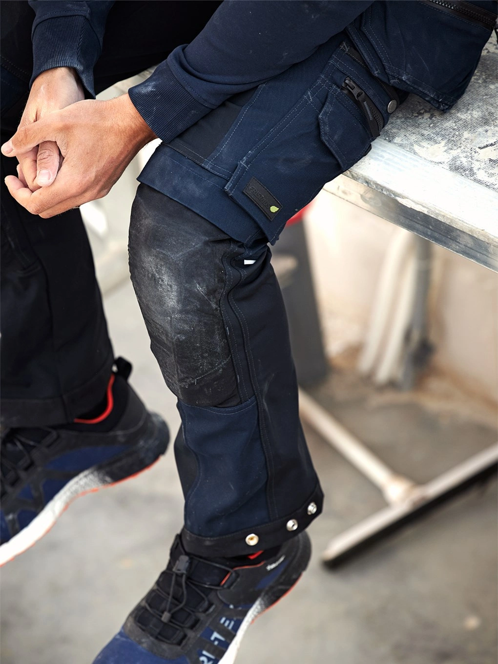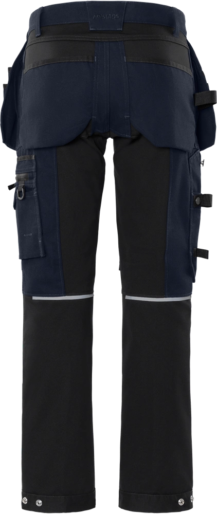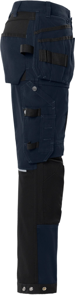 - Spodnie rzemieślnicze z dużymi panelami z rozciągliwego w 4 kierunkach materiału optymalizującego mobilność.