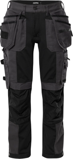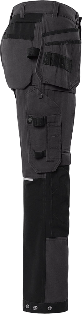 - Spodnie rzemieślnicze z dużymi panelami z rozciągliwego w 4 kierunkach materiału optymalizującego mobilność.