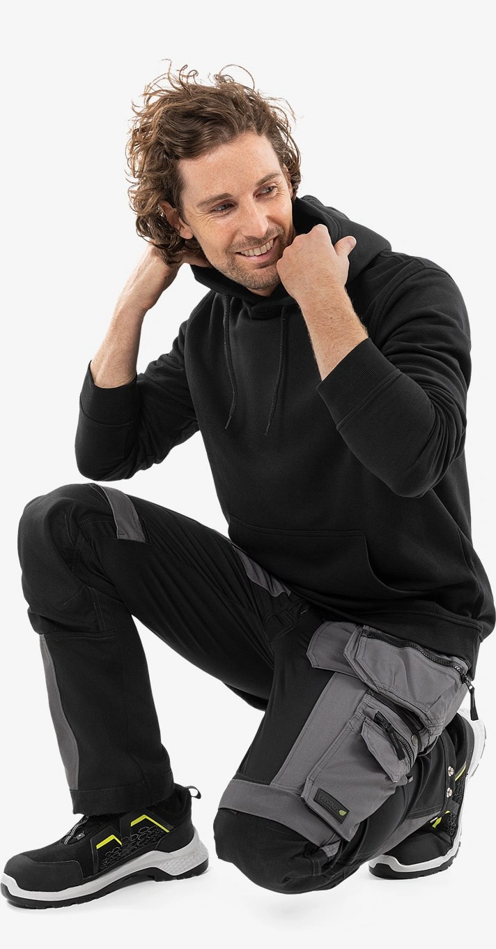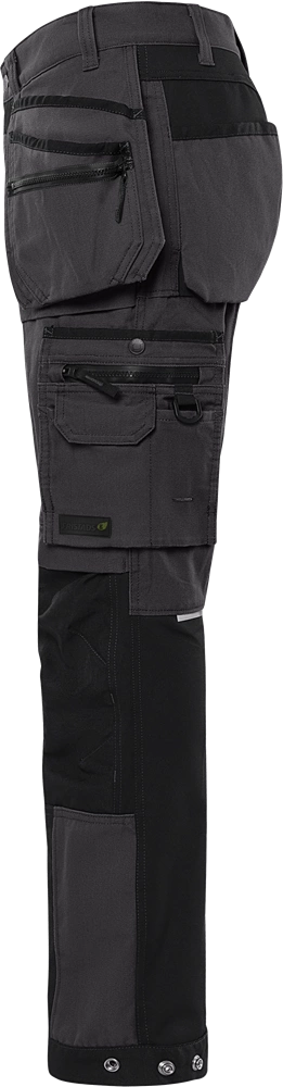 Spodnie rzemieślnicze z dużymi panelami z rozciągliwego w 4 kierunkach materiału optymalizującego mobilność. Wytrzymałe spodnie robocze wykonane z wygodnej bawełny i poliestru pochodzącego z recyklingu, z funkcjonalnymi kieszeniami, wzmocnieniami CORDURA® i wodoodporną kieszenią na suwak. Z deklaracją EPD (Environmental Product Declaration). Koncepcja: Alnaryd Wolny od PFAS