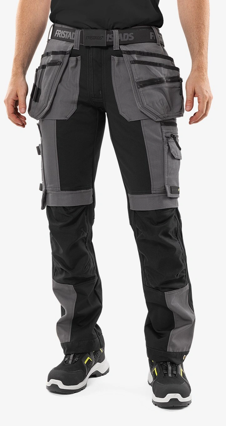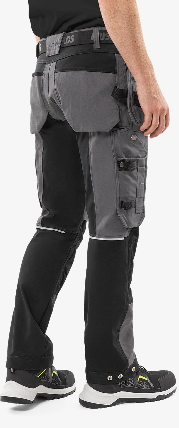 Materiał częściowo pochodzący z recyklingu / Z deklaracją środowiskową produktu (EPD) / Duże 4-kierunkowe elastyczne panele z przodu, z tyłu i na nogawkach / 2 luźno wiszące kieszenie wzmocnione CORDURĄ®, jedna z 2 kieszeniami, w tym jedna na zamek, jedna z 3 mniejszymi kieszeniami i pętlami na narzędzia / 2 kieszenie z przodu / 2 kieszenie boczne, jedna na zamek / 2 tylne kieszenie wzmocnione CORDURĄ® z luźnym dnem / D-ring pod luźno wiszącą kieszenią / Podwójnie wzmocniony szew w kroku / Pętla na młotek / Wzmocniona CORDURĄ® składana kieszeń na prawidła z kieszenią na narzędzia, kieszenią na długopis, Duża kieszeń na nogawce zapinana na zatrzask, wodoodporna kieszeń na zamek błyskawiczny, kieszeń na telefon i dodatkowa kieszeń z D-ringiem na identyfikator / Wzmocnione CORDURĄ® kieszenie na kolanach z zewnętrznym otwarciem od góry / Regulacja wysokości nakolanników w kieszeni na kolanach / Wzmocnione CORDURĄ® zakończenia nogawek, regulowane zapięciem na zatrzask / Odblaskowe detale z tyłu nogawek / Zatwierdzone zgodnie z EN 14404 wraz z nakolannikami 124292 / Certyfikat OEKO-TEX® / Numer rejestracyjny EPD 8319 na environdec.com