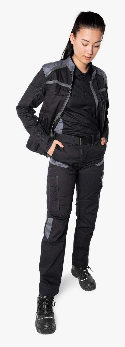 - Współczesne spodnie o kobiecym kroju dla pracowników sektora usług, przemysłu i budownictwa. Wykonane z lekkiego i wytrzymałego materiału z mechanicznym rozciągnięciem, który zapewnia wygodną swobodę ruchów. Dopuszczony do prania przemysłowego.