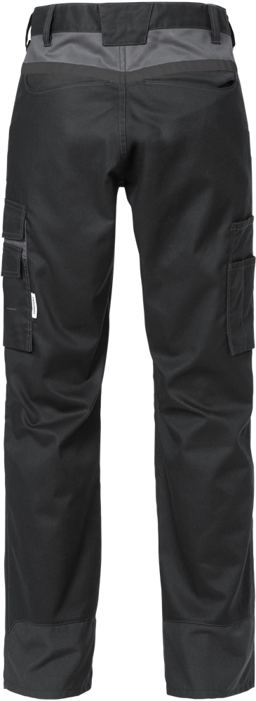 Elastyczny materiał / Ciemno-szare odblaskowe elementy / 2 kieszenie z przodu / 2 kieszenie z tyłu / Ukryty guzik z przodu / 2 kieszenie na udach / Dodatkowy szew w kroku / Kieszeń na nogawce z dodatkową kieszenią / Pętla na linijkę wewnątrz kieszeni na nogawce / Kieszeń na nogawce z klapką i zapięciem na rzep, kieszeń na telefon komórkowy i dodatkowa kieszeń z klapką i zapięcie na rzep, D-ring pod klapą / Wzmocnione końce nóg CORDURA® / Regulowana długość nogawek z 5 cm naddatkiem na dole / Przetestowane pod kątem prania zgodnie z ISO 15797 / Z EPD (deklaracją środowiskową produktu) – numer rejestracyjny 1701 na environdec.com / Certyfikat OEKO-TEX®