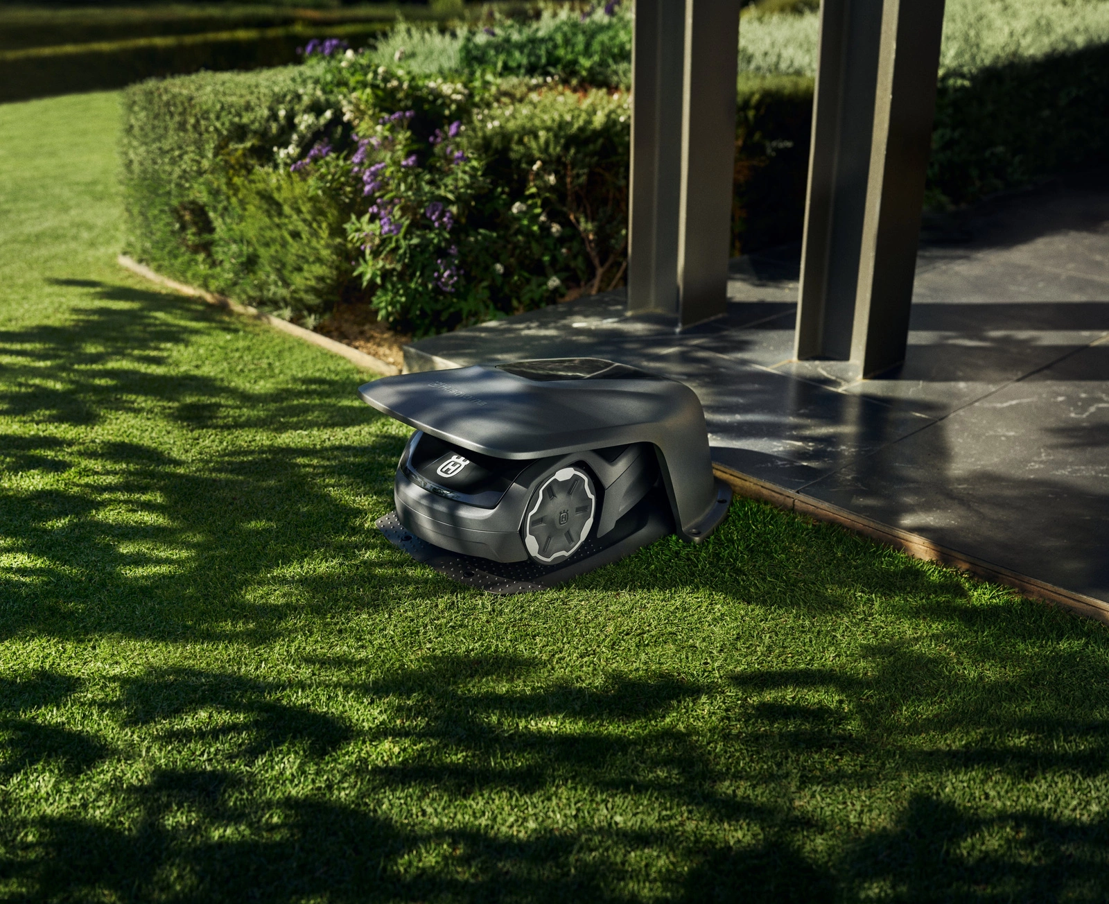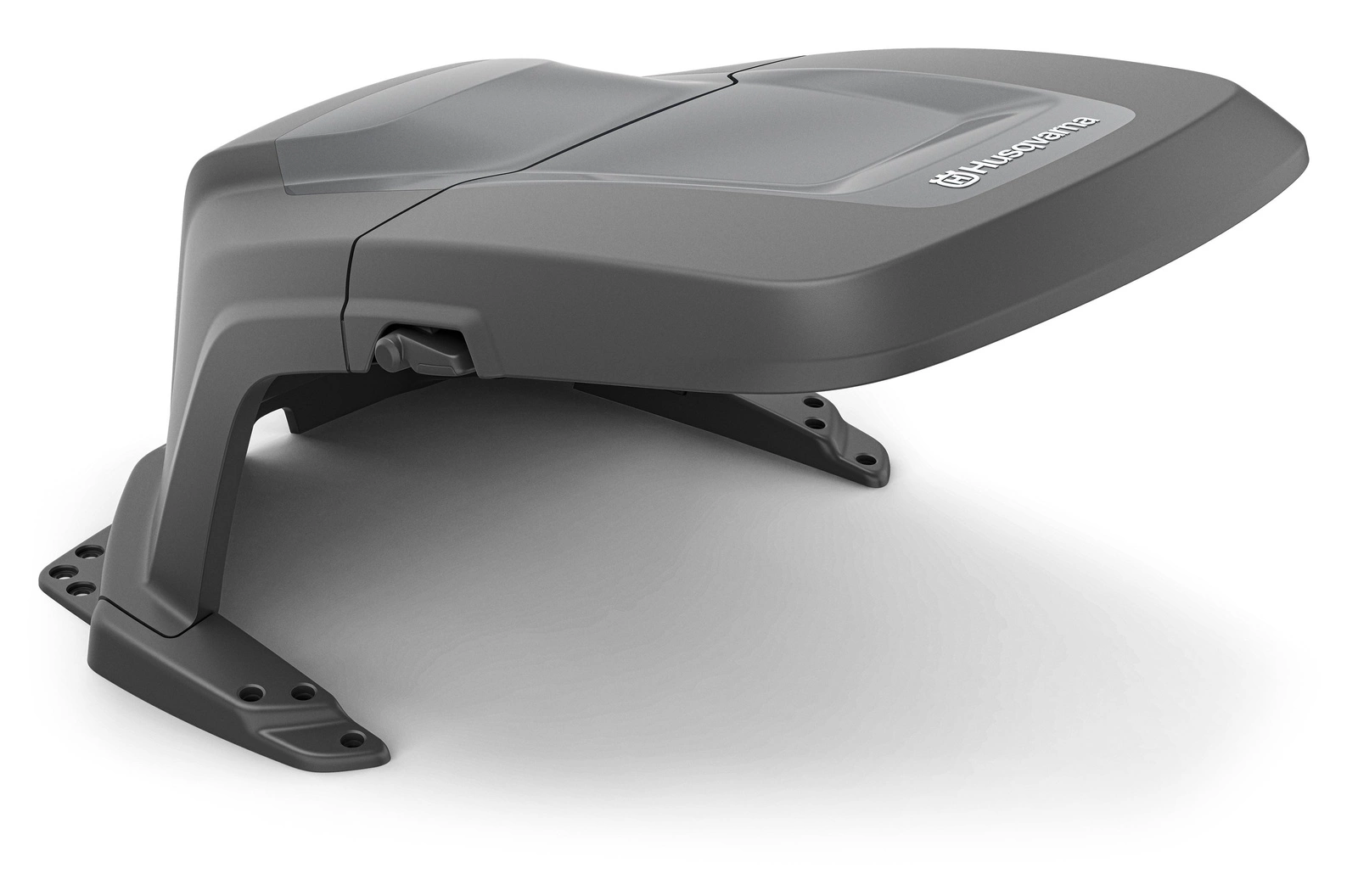 Chroni stację ładującą oraz korpus kosiarki przed wpływem promieni słonecznych i deszczem. Dzięki składanej górze interfejs użytkownika i wyświetlacz kosiarki są łatwo dostępne podczas ładowania kosiarki. Wszystkie połączenia przewodów można uzyskać przez właz kablowy z tyłu